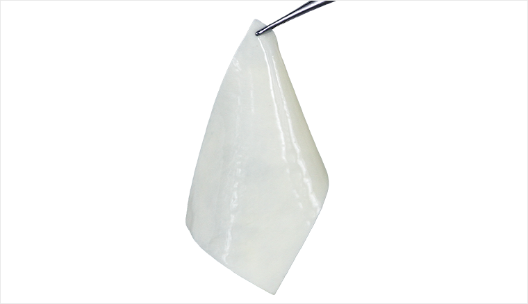 目前,临床用于硬脑(脊)膜修复的植入材料有高分子材料及生物材料两种。前者如聚四氟乙烯等;后者为动物源性生物材料,包括生物衍生材料(用动物组织胶原或多层猪小肠粘膜下层组织再加工)和动物组织改性材料。本公司的产品为牛心包组织改性材料,其具有类似自然体内结缔组织的结构特性,可为患者自体组织自然修复提供组织支架,以获得足够的时间与空间实现组织自然修复,使修复后的软组织与原健康组织无区别,这是高分子植入材料和动物源的生物衍生材料所不具备的。